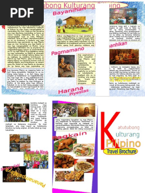 Bawal matulog sa tabi ng kabaong maaaring hindi mo mapipigilan ang paggalaw ng ulo mo. Isang bansang nasa ilalim ng kontrol ng ibang nasyon at isang bansang walang maipagmamalaking tradisyon at kultura. Bahagi ng tradisyon ng mga Pilipino ang pagpapahalagasapaggawa pakikisama pagdamay pagtanaw ng utangnaloob paggalangsanakakatanda at kababaihan katapangan at katapatan.