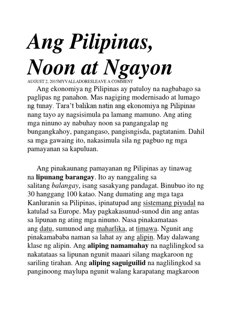 Alam mo ba ang kaibahan ng noon sa ngayon. Tell us what you think abut this post by leaving your comments below. Nakamit ang inaasam na kasarinlan na ipinaglaban ngayon ay mayroong sariling landas na pinagyayaman.